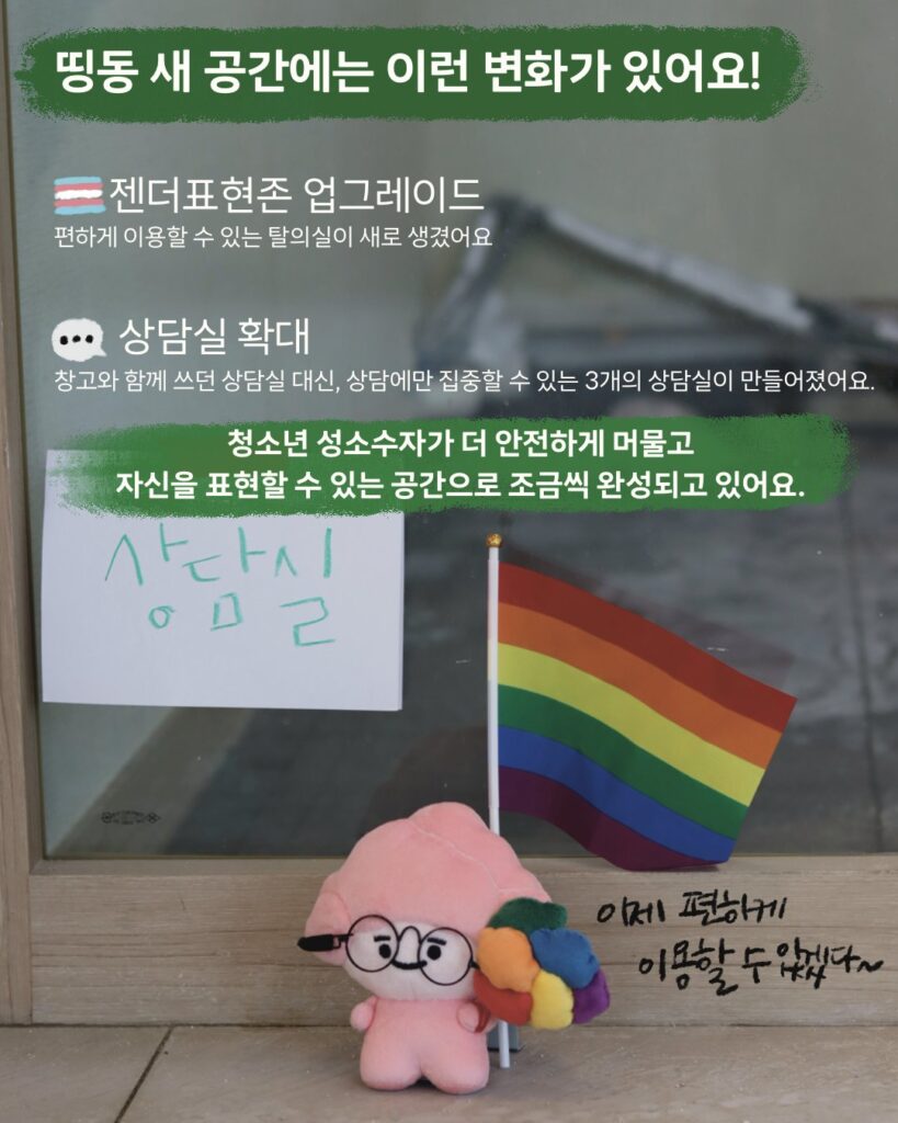 위기 청소년 성소수자를 위한 소중한 공간인 띵동에 연대의 힘을 보태주셔서 감사합니다.