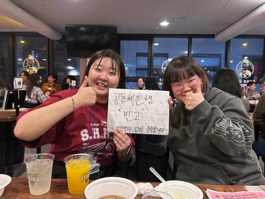 (2025.12.14.)오늘 서울인권영화제 후원주점 참석해서 지구분담금 전달드렸습니다. 참석한 김에 빈고 홍보할 기회를 얻어 짧게 홍보도 하구 왔어요. 생각보다 많은 분들이 이미 빈고를 알고 계셔서 너무 뿌듯했습니다